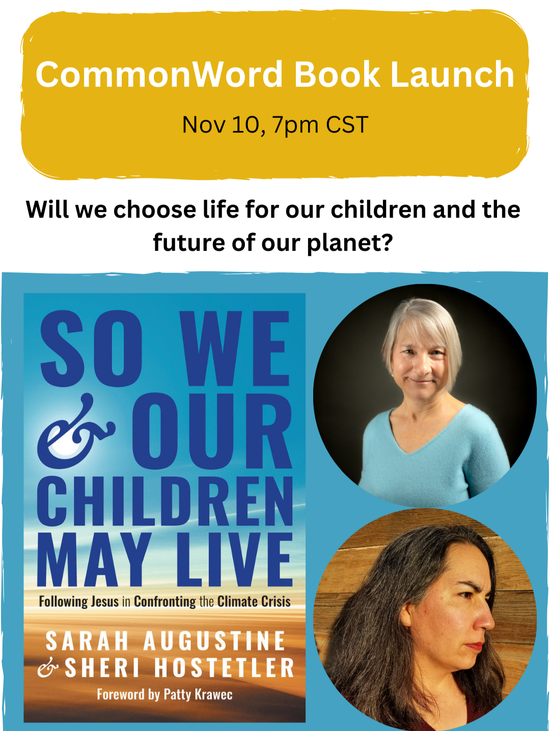 Sarah and Sheri's new book is coming out October 31st and CommonWord is doing a book launch in Winnipeg, Manitoba to celebrate! Join in person or livestream it on November 10th at 7pm (Central Time) to hear Sarah and Sheri offer hope for a better future alongside concrete ways to partner with Indigenous Peoples to protect life and advocate for sustainable change that follows Jesus. Check out the Facebook Event Page or find the livestream link on the CommonWord site.
