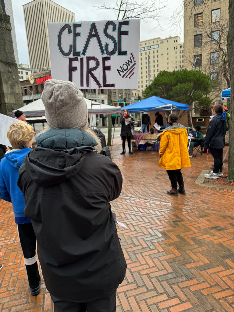 “We are watching as Palestinian and Jewish people are demanding a ceasefire even while they are forced to reckon with unspeakable tragedies,” said event organizer and Seattle Mennonite Church member Greg Thiessen. “We believe we have a duty as pacifists and Mennonite Christians to join public action to demand an end to the genocide in Gaza, to create a just and lasting peace, and to end the U.S. and western funded occupation of Palestine.”