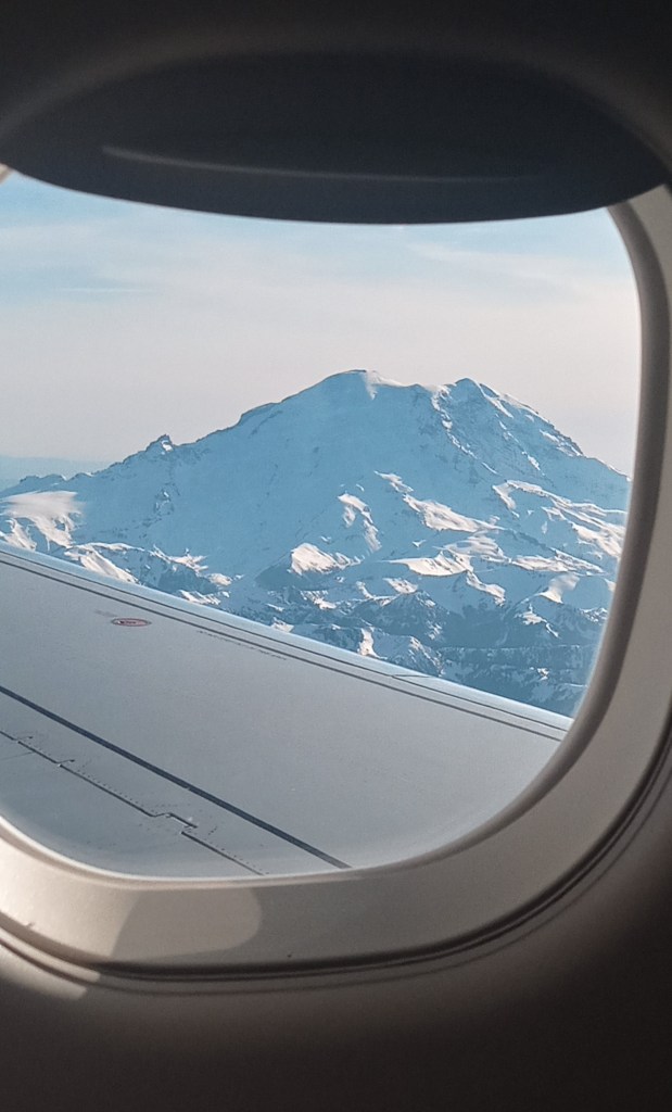 In April 2024, while flying from Pasco to Seattle in the United States, I was fortunate to be able to view the majesty of Takhoma (aka Mount Rainier) from the plane window. My neighbor in the window seat also enjoyed the view.