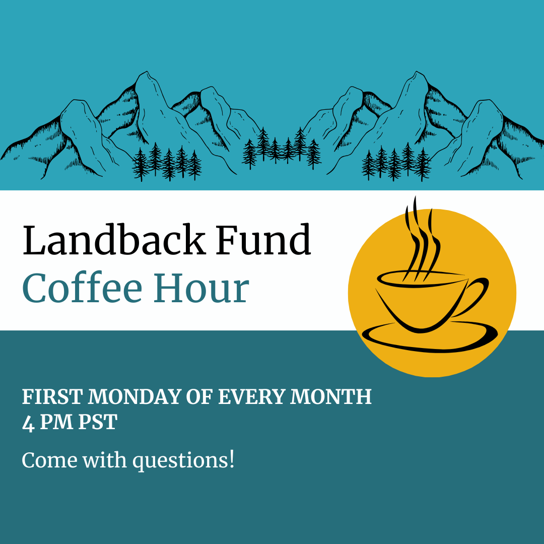 Coalition leadership is hosting a monthly Landback Coffee Hour to answer your questions about the Landback Fund. Have specific questions or want to talk about landback in your context? Join us on Zoom Monday, March 3rd at 4pm PT / 5pm MT / 6pm CT / 7pm ET