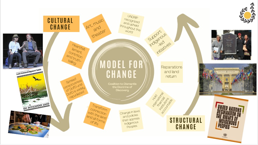 This process includes learning about the Doctrine of Discovery, both in the national and international arenas as well as in the local context of history and current relations with Indigenous peoples. Education is a process of culture change that, once begun, goes on throughout the life of the community. This work is not linear, but as we learn to step into realities we have been unaware of, we must take action.